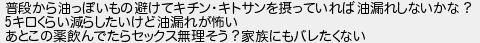 普段から油っぽいもの避けてキチンキトサンを摂っていれば油漏れしないかな? キロくらい減らしたいけど油漏れが怖い あとこの薬飲んでたらセックス無理そう?家族にもバレたくない