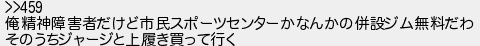 俺精神障害者だけど市民スポーツセンターかなんかの併設ジム無料だわ そのうちジャージと上履き買って行く