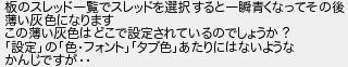 板のスレッド一覧でスレッドを選択すると一瞬青くなってその後 薄い灰色になります この薄い灰色はどこで設定されているのでしょうか? 設定の色フォントタブ色あたりにはないような かんじですが