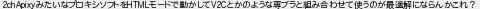 653: [sage] 2023/07/10(月) 18:55:42.43 ID:EIwTWjAP0 2chApixyみたいなプロキシソフトをHTMLモードで動かしてV2Cとかのような専ブラと組み合わせて使うのが最適解にならんかこれ? http://egg.5ch.net/test/read.cgi/software/1687739432/653