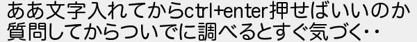 246: [sage] 2023/10/08(日) 19:33:15.67 ID:7bIo4YDG0 ああ文字入れてからctrl+enter押せばいいのか 質問してからついでに調べるとすぐ気づく・・ http://egg.5ch.net/test/read.cgi/software/1693649421/246