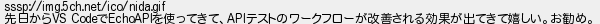 447: こいちゃ [] 2024/10/25(金) 22:01:05.02 ID:f+2qZBye0 sssp://img.5ch.net/ico/nida.gif 先日からVS CodeでEchoAPIを使ってきて、APIテストのワークフローが改善される効果が出てきて嬉しい。お勧め。 http://egg.5ch.net/test/read.cgi/software/1712374739/447