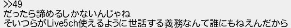52: [sage] 2024/04/13(土) 11:13:10.98 ID:S8TkB3Ze0 >>49 だったら諦めるしかないんじゃね そいつらがLive5ch使えるように世話する義務なんて誰にもねえんだから http://egg.5ch.net/test/read.cgi/software/1712375061/52