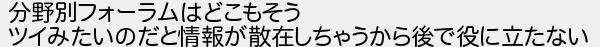 分野別フォーラムはどこもそう ツイみたいのだと情報が散在しちゃうから後で役に立たない