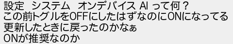 設定 システム オンデバイス って何? この前トグルをにしたはずなのにになってる 更新したときに戻ったのかなぁ が推奨なのか