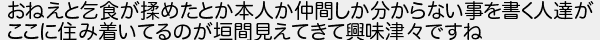 おねえと乞食がめたとか本人か仲間しか分からない事を書く人達が ここに住み着いてるのが垣間見えてきて興味津ですね