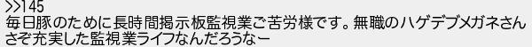 毎日豚のために長時間掲示板監視業ご苦労様です無職のハゲデブメガネさん さぞ充実した監視業ライフなんだろうなー