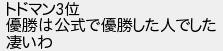 トドマン位 優勝は公式で優勝した人でした 凄いわ