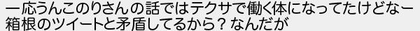 一応うんこのりさんの話ではテクサで働く体になってたけどなー 箱根のツイートと矛盾してるから?なんだが