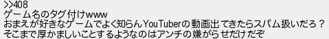 ゲーム名のタグ付け おまえが好きなゲームでよく知らんの動画出てきたらスパム扱いだろ? そこまで厚かましいことするようなのはアンチの嫌がらせだけだぞ