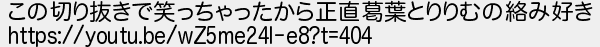 653: 名無しさん@お腹いっぱい。 [sage] 2021/01/27(水) 21:09:41 この切り抜きで笑っちゃったから正直葛葉とりりむの絡み好き https://youtu.be/wZ5me24l-e8?t=404 http://egg.5ch.net/test/read.cgi/streaming/1611748636/653