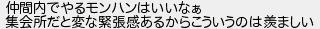 仲間内でやるモンハンはいいなぁ 集会所だと変な緊張感あるからこういうのは羨ましい