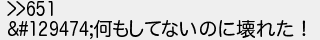 653: [sage] 2021/03/06(土) 18:46:32 >>651 🧂何もしてないのに壊れた! http://egg.5ch.net/test/read.cgi/streaming/1615008321/653