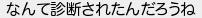 650: [] 2021/05/12(水) 13:29:21.80 なんて診断されたんだろうね http://egg.5ch.net/test/read.cgi/streaming/1619706783/650
