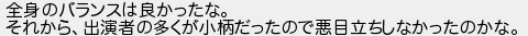全身のバランスは良かったな それから出演者の多くが小柄だったので悪目立ちしなかったのかな