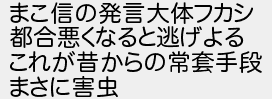 まこ信の発言大体フカシ 都合悪くなると逃げよる これが昔からの常套手段 まさに害虫