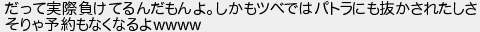 だって実際負けてるんだもんよしかもツベではパトラにも抜かされたしさ そりゃ予約もなくなるよ