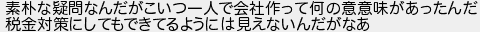 素朴な疑問なんだがこいつ一人で会社作って何の意意味があったんだ 税金対策にしてもできてるようには見えないんだがなあ