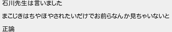 石川先生は言いました まこじきはちやほやされたいだけでお前らなんか見ちゃいないと 正論