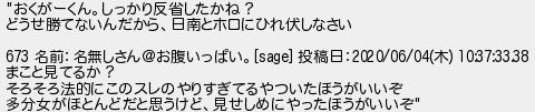 609: [] 2021/05/04(火) 02:21:17.05 "おくがーくん。しっかり反省したかね? どうせ勝てないんだから、日南とホロにひれ伏しなさい 673 名前:名無しさん@お腹いっぱい。[sage] 投稿日:2020/06/04(木) 10:37:33.38 まこと見てるか? そろそろ法的にこのスレのやりすぎてるやついたほうがいいぞ 多分女がほとんどだと思うけど、見せしめにやったほうがいいぞ" http://egg.5ch.io/test/read.cgi/streaming/1619708459/609
