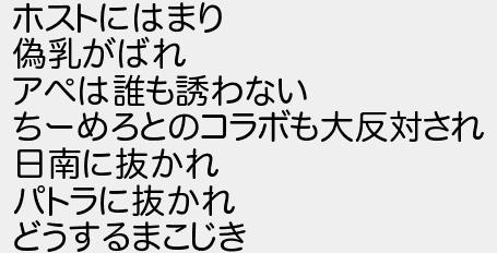 ホストにはまり 偽乳がばれ アペは誰も誘わない ちーめろとのコラボも大反対され 日南に抜かれ パトラに抜かれ どうするまこじき