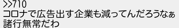 コロナで広告出す企業も減ってんだろうなぁ 諸行無常だわ