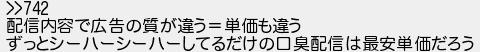 配信内容で広告の質が違う単価も違う ずっとシーハーシーハーしてるだけの口臭配信は最安単価だろう