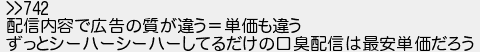 配信内容で広告の質が違う単価も違う ずっとシーハーシーハーしてるだけの口臭配信は最安単価だろう