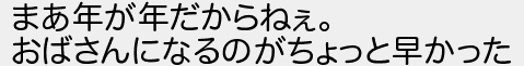 まあ年が年だからねぇ おばさんになるのがちょっと早かった