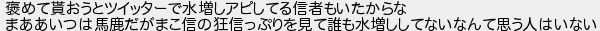 褒めて貰おうとツイッターで水増しアピしてる信者もいたからな まああいつは馬鹿だがまこ信の狂信っぷりを見て誰も水増ししてないなんて思う人はいない