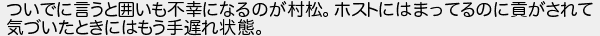 ついでに言うと囲いも不幸になるのが村松ホストにはまってるのに貢がされて 気づいたときにはもう手遅れ状態