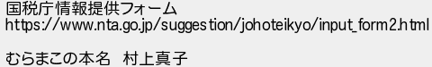 国税庁情報提供フォーム むらまこの本名 村上真子