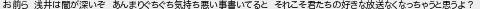 お前ら 浅井は闇が深いぞ あんまりぐちぐち気持ち悪い事書いてると それこそ君たちの好きな放送なくなっちゃうと思うよ?