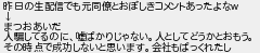 昨日の生配信でも元同僚とおぼしきコメントあったよな まつおあいだ 人してるのに嘘ばかりじゃない人としてどうかとおもう その時点で成功しないと思います会社もばっくれたし