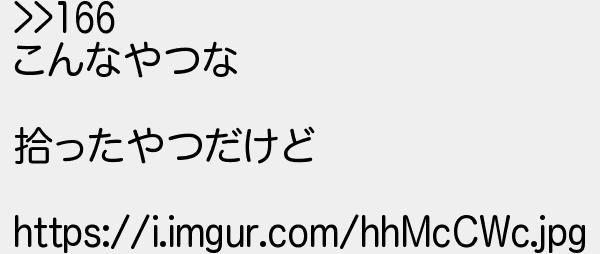 167: [] 2021/12/01(水) 16:42:33 >>166 こんなやつな 拾ったやつだけど https://i.imgur.com/hhMcCWc.jpg http://egg.5ch.io/test/read.cgi/streaming/1638190397/167