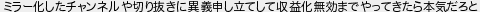 ミラー化したチャンネルや切り抜きに異義申し立てして収益化無効までやってきたら本気だろと