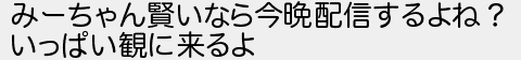 みーちゃん賢いなら今晩配信するよね? いっぱい観に来るよ