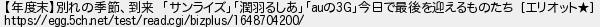 236: [sage] 2022/03/31(木) 14:27:24 【年度末】別れの季節、到来 「サンライズ」「潤羽るしあ」「auの3G」今日で最後を迎えるものたち [エリオット★] https://egg.5ch.net/test/read.cgi/bizplus/1648704200/ http://egg.5ch.net/test/read.cgi/streaming/1648669708/236
