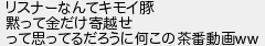 346: [] 2022/03/31(木) 16:08:36 リスナーなんてキモイ豚 黙って金だけ寄越せ って思ってるだろうに何この茶番動画ww http://egg.5ch.net/test/read.cgi/streaming/1648669708/346