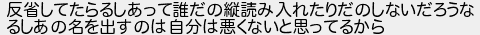 反省してたらるしあって誰だの縦読み入れたりだのしないだろうな るしあの名を出すのは自分は悪くないと思ってるから
