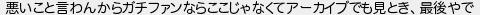 悪いこと言わんからガチファンならここじゃなくてアーカイブでも見とき最後やで