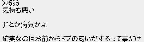 気持ち悪い 罪とか病気かよ 確実なのはお前からドブの匂いがするって事だけ