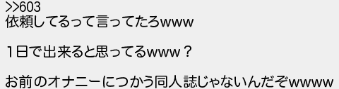 依頼してるって言ってたろ 1日で出来ると思ってる? お前のオナニーにつかう同人誌じゃないんだぞ