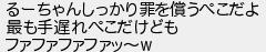 695: [sage] 2022/03/31(木) 19:40:07 るーちゃんしっかり罪を償うぺこだよ 最も手遅れぺこだけども ファファファファッ〜w http://egg.5ch.net/test/read.cgi/streaming/1648669708/695