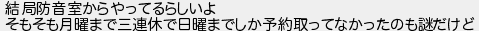 結局防音室からやってるらしいよ そもそも月曜まで三連休で日曜までしか予約取ってなかったのも謎だけど