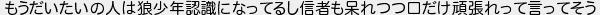 もうだいたいの人は狼少年認識になってるし信者も呆れつつ口だけ頑張れって言ってそう