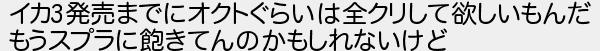 イカ発売までにオクトぐらいは全クリして欲しいもんだ もうスプラに飽きてんのかもしれないけど