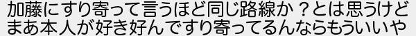 加藤にすり寄って言うほど同じ路線か?とは思うけど まあ本人が好き好んですり寄ってるんならもういいや