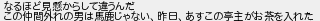 なるほど見懸からして違うんだ この仲間外れの男は馬鹿じゃない昨日あすこの亭主がお茶を入れた