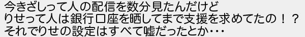 今きざしって人の配信を数分見たんだけど りせって人は銀行口座を晒してまで支援を求めてたの!? それでりせの設定はすべて嘘だったとか